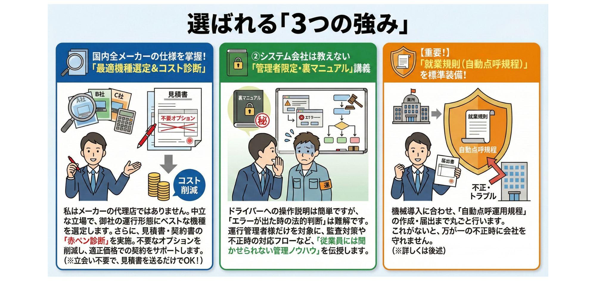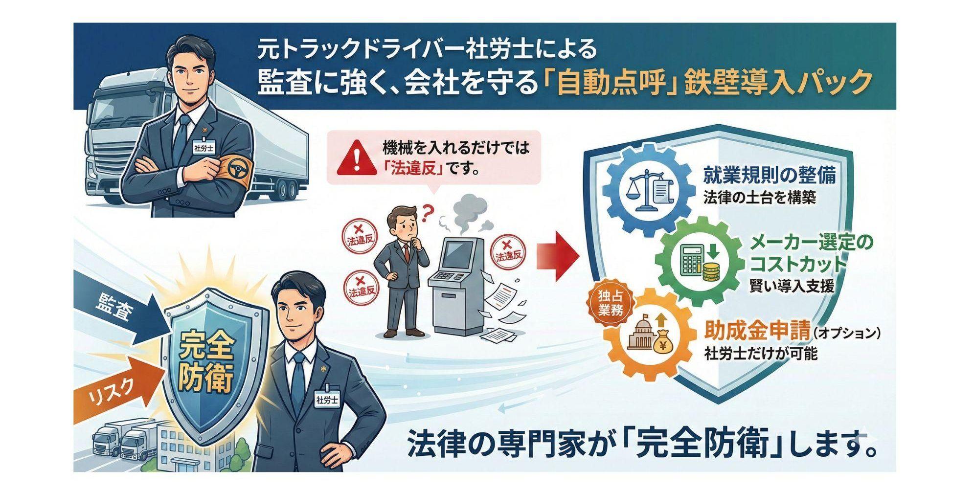 当事務所の「自動点呼導入支援コンサルティング」サービスが、運送業の専門ニュースサイト「LOGISTICS TODAY」、「LNEWS」の両方に記事として掲載されました。